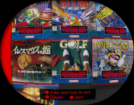 Running the Virtual Boy – Nintendo Classics software outside the headset is technically possible, in handheld mode only, if you don’t mind focusing on one of the 384×224 viewports.