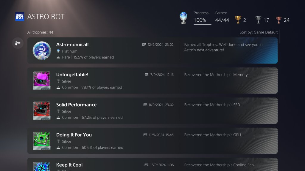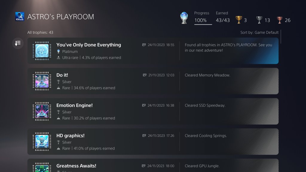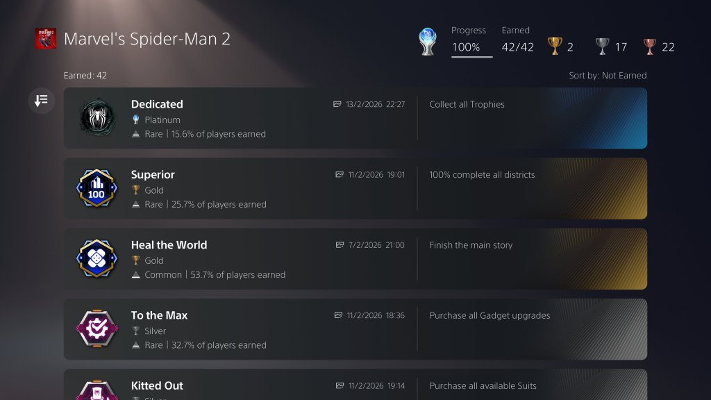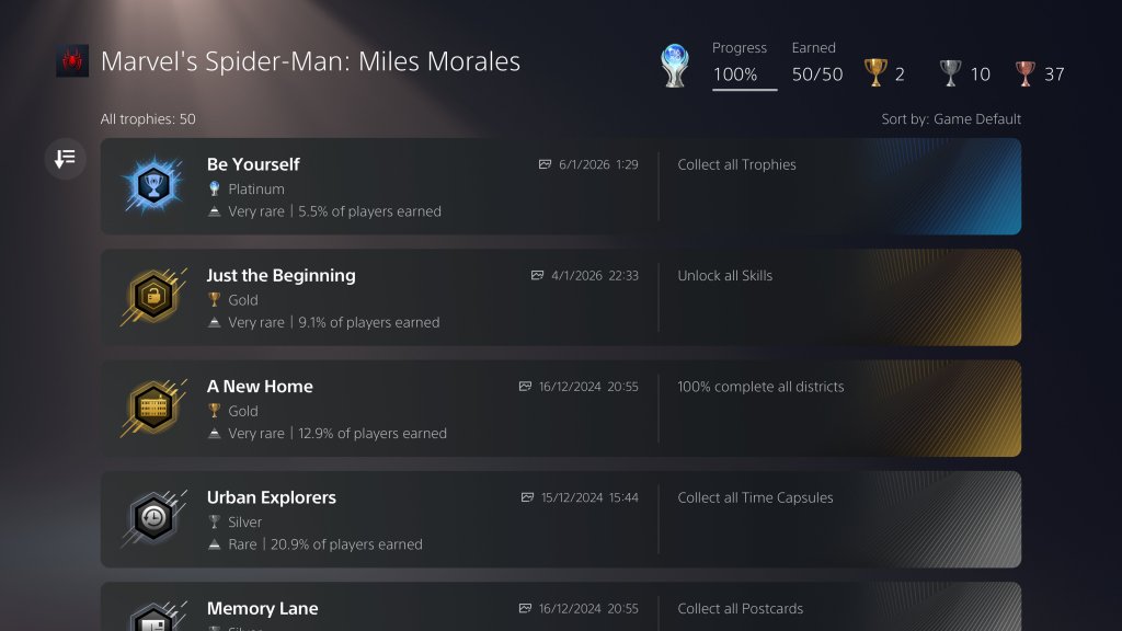 Here’s a list of every Platinum Trophy and 100% Trophy List I have achieved.